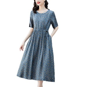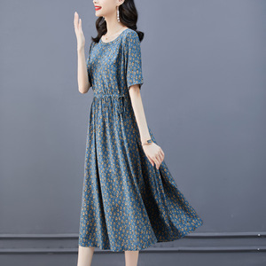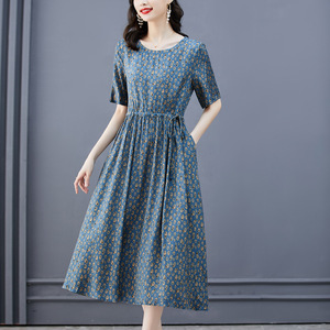 本物のシルクのシルクの大きい奥さんのワンピースの女性2025夏の新型のファッションの気質は腰を収めてやせている長いスカートを現します。