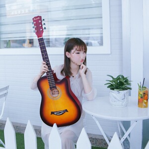 38inch シングルボード-ブラウン-ギター + 付属品のフルセット + チューニング APP