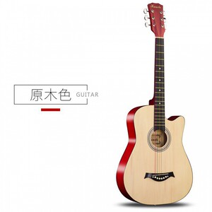 38inch シングルボードウッドカラーギター + 付属品フルセット + チューナー