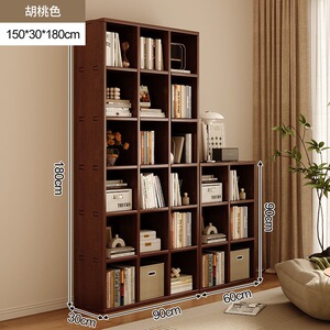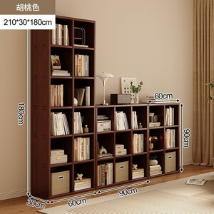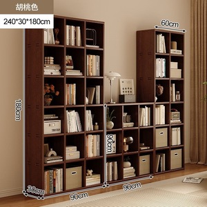全実木本棚壁本棚一体新中国式客間胡桃色満壁家庭用物置棚展示棚