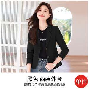 酒红色西装外套女款春秋2025新款今年流行爆款超火短款小个子上衣