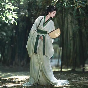 漢服戦国長衣2025新型大袖交襟セット復元二重直裾プリント清冷尾大放量