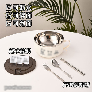 カップラーメンの碗は蓋のステンレスの学生の寮を持っています。果物の碗の大容量で水を切ることができます。