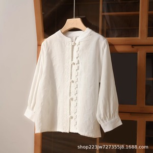 子供用パールボタンシャツ 女の子用スタンドカラー長袖シャツ 中高学年向け2025年 薄手綿素材 中国風 幼児・小学生向け