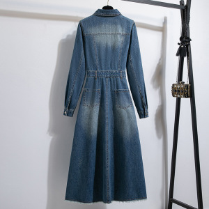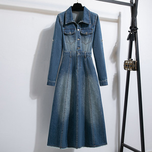 長袖デニムドレス女性 2025 春プラスサイズファット MM ルーズ気質シャツデニムスカートロングスカート