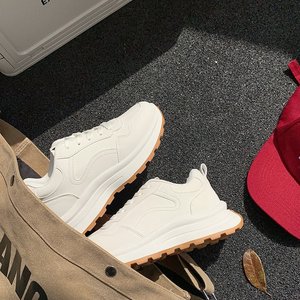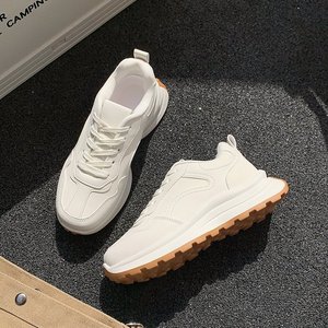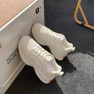 外国貿易のお父さんの靴の女性の2025秋の新型の復古の阿甘運動のカジュアルな靴の純色の厚い底の学生の白い靴