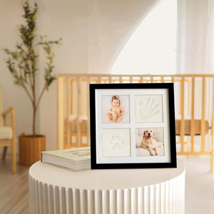 クロスボーダー手形・足形フォトフレーム 4グリッドインク泥フォトフレーム 赤ちゃん1歳用 壁掛け式記念フォトフレーム
