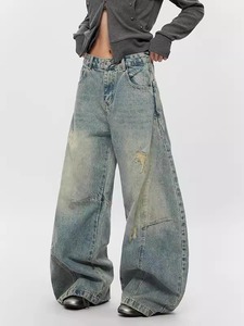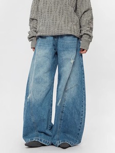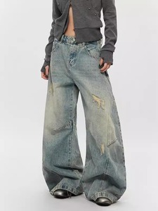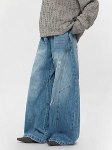 メンズリップドジーンズ、ルーズストレート、カップルシミターワイドレッグ、アメリカンハイストリートデザインパンツ、トレンディなブランド、ハンサム
