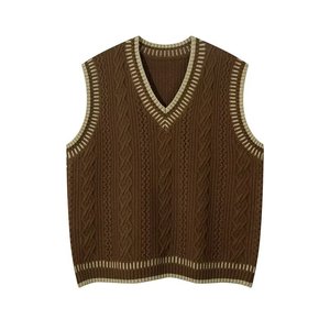 美式V领麻花马甲毛衣男秋冬新款宽松学院风休闲背心针织上衣叠穿