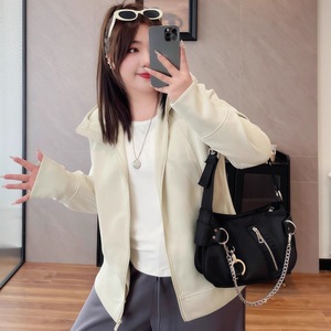 40-150kg プラスサイズの女性のフード付きジッパートレーナー春と秋の薄いコート無地痩身カーディガンジャケット
