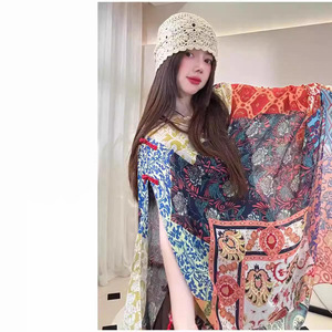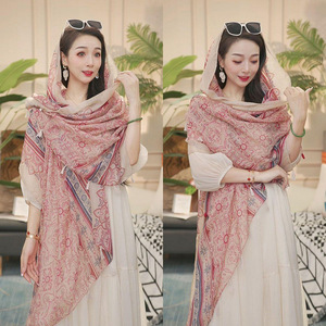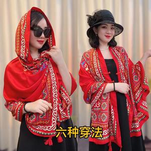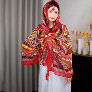 エスニックスタイル [Tyrande] サマーショール レトロバックル 日焼け止め コットンとリネンのショール カバーアップ 万能ビーチタオル