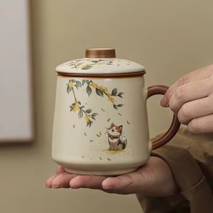 ベージュの汝窯ティーカップ、大容量セラミック茶水分離カップ、博物館文化創造ティーカップ、チームビルディング会議記念カップ