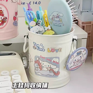 かわいいピンクの鉄のバケツイチゴ収納バケツ学生寮デスクトップ収納ボックスインリトルレッドブック同じクマペンホルダー
