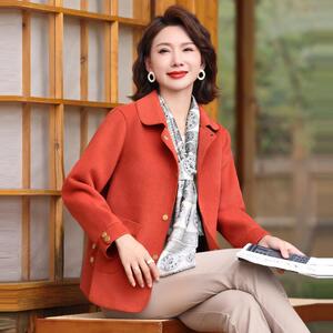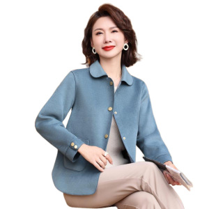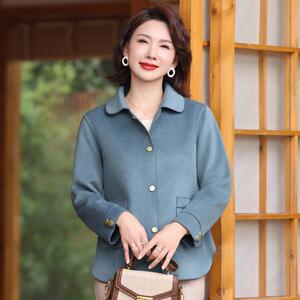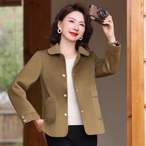 2025年新作ママの春コート、おしゃれなウールトップス、中高年女性の春秋ショートウインドブレーカー