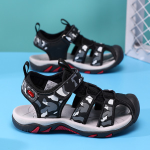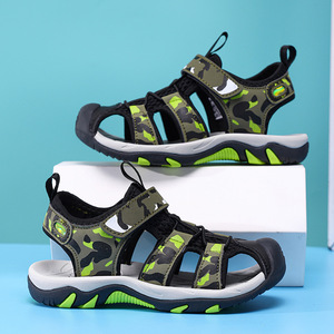 夏の男の子と子供のつま先サンダル 2025 中型および大型子供用ソフトソール滑り止め子供用ビーチシューズ 6-12 越境外国貿易