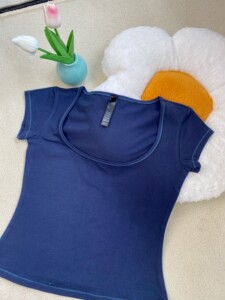 ネイビーブルー【スクエアネック半袖】コットン