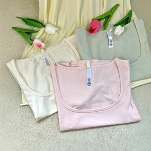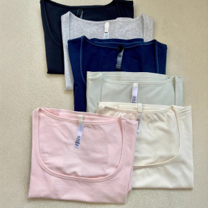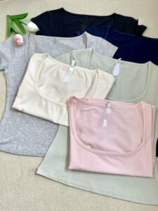 ライトグレー【スクエアネック半袖】コットン