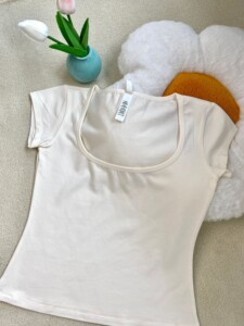 ホワイト【スクエアネック半袖】モーダル