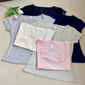 Skim * s新商品のアメリカ式ギャルの方襟のスリムな半袖の百合tシャツの上着の女性のカーダシアンと同じです。