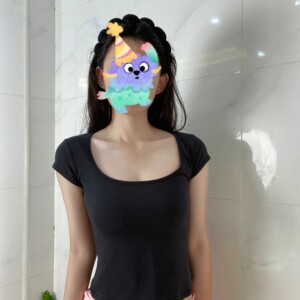 ブラック【スクエアネック半袖】コットン