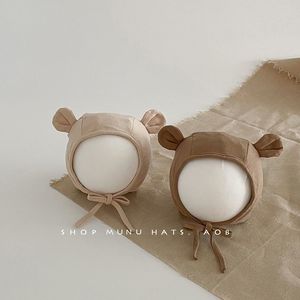 ベビー帽子春と秋の耳保護帽子新生児胎児帽子純綿幼児かわいい超かわいい秋のレースアッププルオーバー帽子