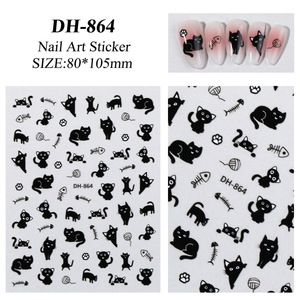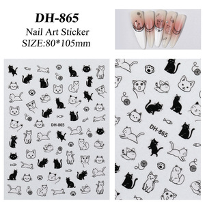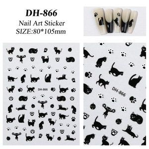 かわいい猫の足跡ネイルアートステッカー 平面で可愛い黒猫DIY小柄ネイルステッカー飾り DHタイプ