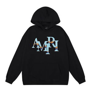 アメリカンストリート Amiri ニッチハイストリート男性と女性のカップルソリッドカラーコットンプリントプルオーバースウェットシャツレトロパーカー