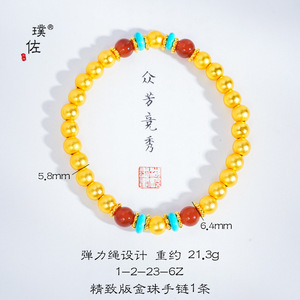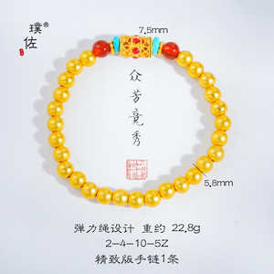 璞佐金店同款沙金仿绿松石红玛瑙金珠手链新中式多宝手串送女友