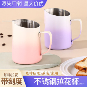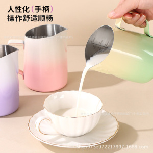 マカロン斜め口ラテアートカップ、尖った口のラテアートカップ、ステンレス製ミルクタンク、ミルクフォームカップ、コーヒー器具、卸売在庫あり
