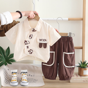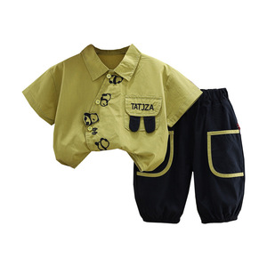 男の子スーツ夏 2025 新しい子供の夏服小中型子供トレンディな男の子カジュアル半袖シャツ子供服卸売