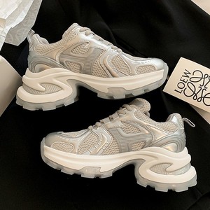 新しい多用途の厚底高さを高める女性用ダッドシューズ、軽量スポーツカジュアルホワイトシューズ、多用途のシルバーホワイト通気性メッシュ