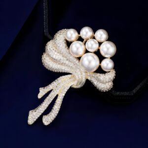 フレンチライトラグジュアリーブーケブローチ、フェミニンで多用途なパールコサージュ、エレガントで絶妙なピン、エレガントなスーツアクセサリー