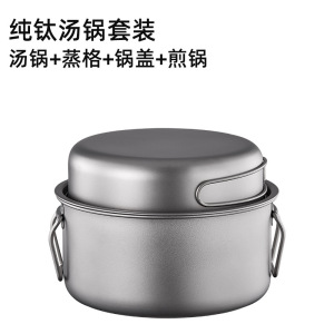 純チタン鍋セット屋外キャンプ折り畳み可能なフライパン6点セット