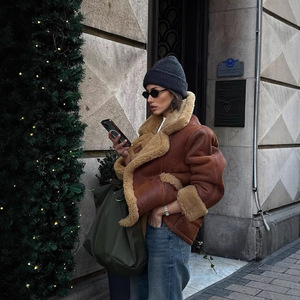 ヨーロッパとアメリカンスタイルのクロスボーダー対外貿易婦人服2025ファッションカジュアル無地気質ラムウールジャケット
