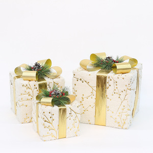 クロスボーダークリスマス発光オーナメントギフトボックス3点セットショッピングモールホテルアイアンギフトボックスパイル装飾オーナメント