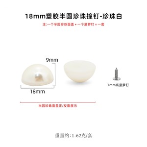 18mm平底プラスチック半丸ビーズ-パールホワイト+7mmパイナップルネイル付き
