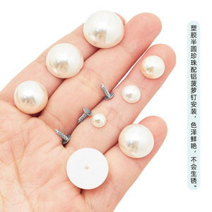 8mm平底プラスチック半丸ビーズ-パールホワイト+5mmパイナップルネイル付き