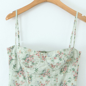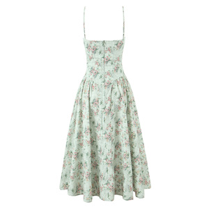 PB & ZA女装2025夏の新型ファッション花プリント角襟立体スチールリング腰しわワンピース