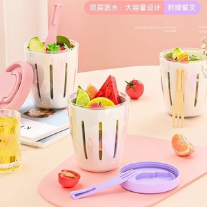 メーカーのフォーク付きサラダカップ、ポータブル排水カップ、二層テイクアウトピクニックボックス、密封されたサラダフルーツカップ