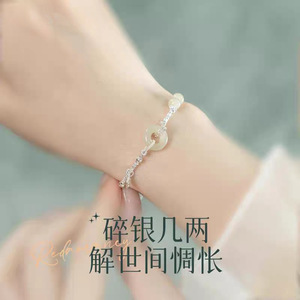 ブロークンシルバー模造ホータン翡翠安全バックルブレスレットガールズモデル 2025 新しいブレスレットガールフレンドのための中国のバレンタインデーのギフト