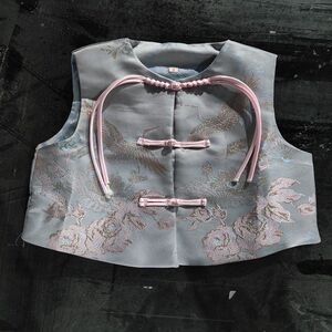新中国式軽国風馬甲女2025年春新作バックル刺繍母レトロ馬挟み上着コート