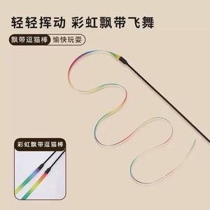 猫の棒の両面の虹のリボンの越境の虹のリボンの猫のおもちゃの猫のネットの赤い猫の棒の工場の現物を笑わせます。