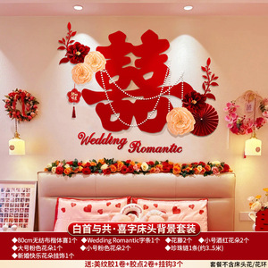 婚房布置床头背景男方房间结婚卧室装饰女方新房套装婚礼用品大全