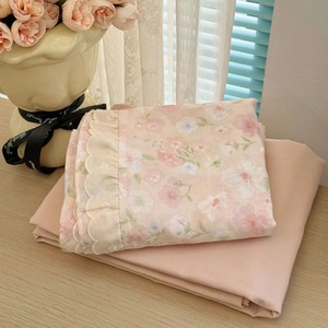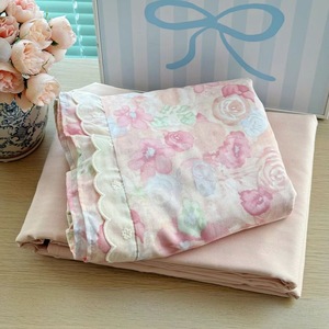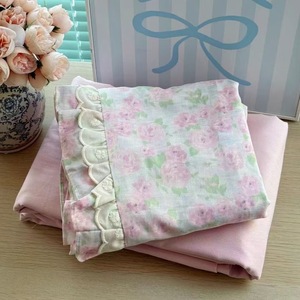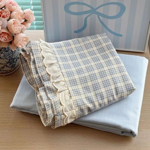 単品の小さい清新な綿の二重の糸のレースの枕カバーの純綿の人の字の紋様は厚いシーツのベッドの笠の3つのセットの卸売りを厚くします。