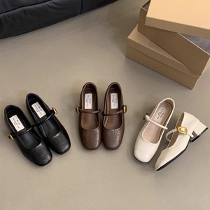 フランスの晩風の浅い口の靴の女性の太さと2025春の新型の韓国版の小さい靴の復古の中でメアリー珍の靴と