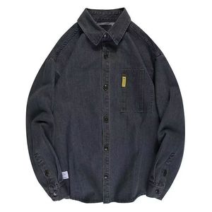2025春秋季牛仔衬衫男潮牌ins宽松港风外套休闲百搭帅气长袖衬衣