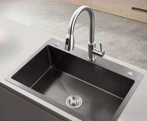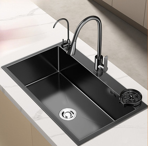 厚い手作りのステンレスの台所の水槽の大きい単槽の黒色のナノの工芸の家庭用の水槽の皿洗いの池の野菜のたらい
