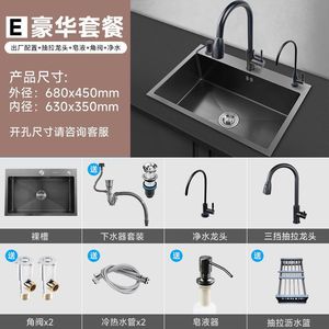 蛇口は含まれません[排水ストレッチバスケットを含む]ブラックナノ厚パネル65*45ブラックダイヤモンド