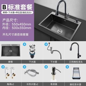 蛇口は含まれません[排水ストレッチバスケットを含む] ブラックナノ厚パネル55*45 ブラックダイヤモンド