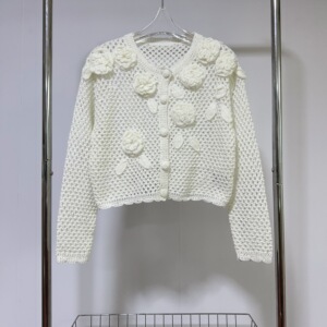 2025 新しい怠惰なハイエンドファッション小さな香りの白中空立体フラワーセーターセータートップ